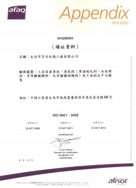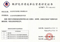 已經(jīng)獲得最嚴格的法國AFAQ-EAQA ISO9001、ISO14001、OHSAS18001認證,取得電廠鍋爐化學清洗A級資質(zhì)。